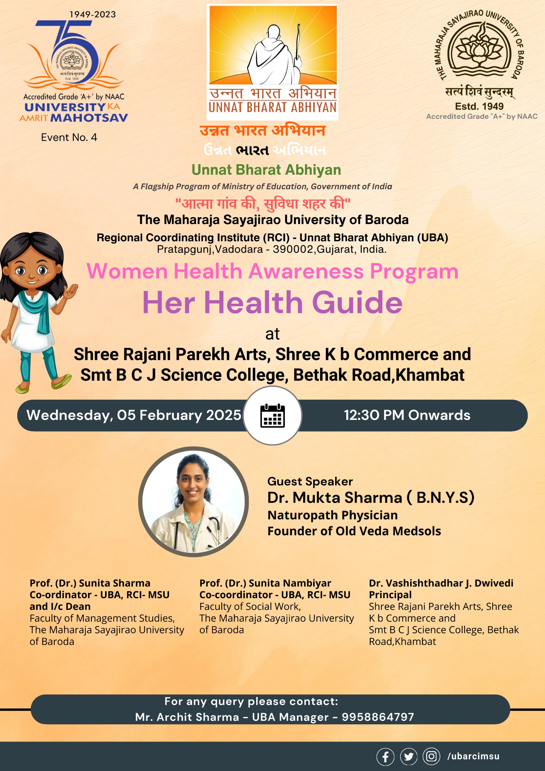 The Women Health Awareness Program: Her Health Guide was held on February 5, 2025, at Shree Rajani Parekh Arts, Shree K.B. Commerce, and Smt B.C.J. Science College, Khambhat. The session featured Dr. .....