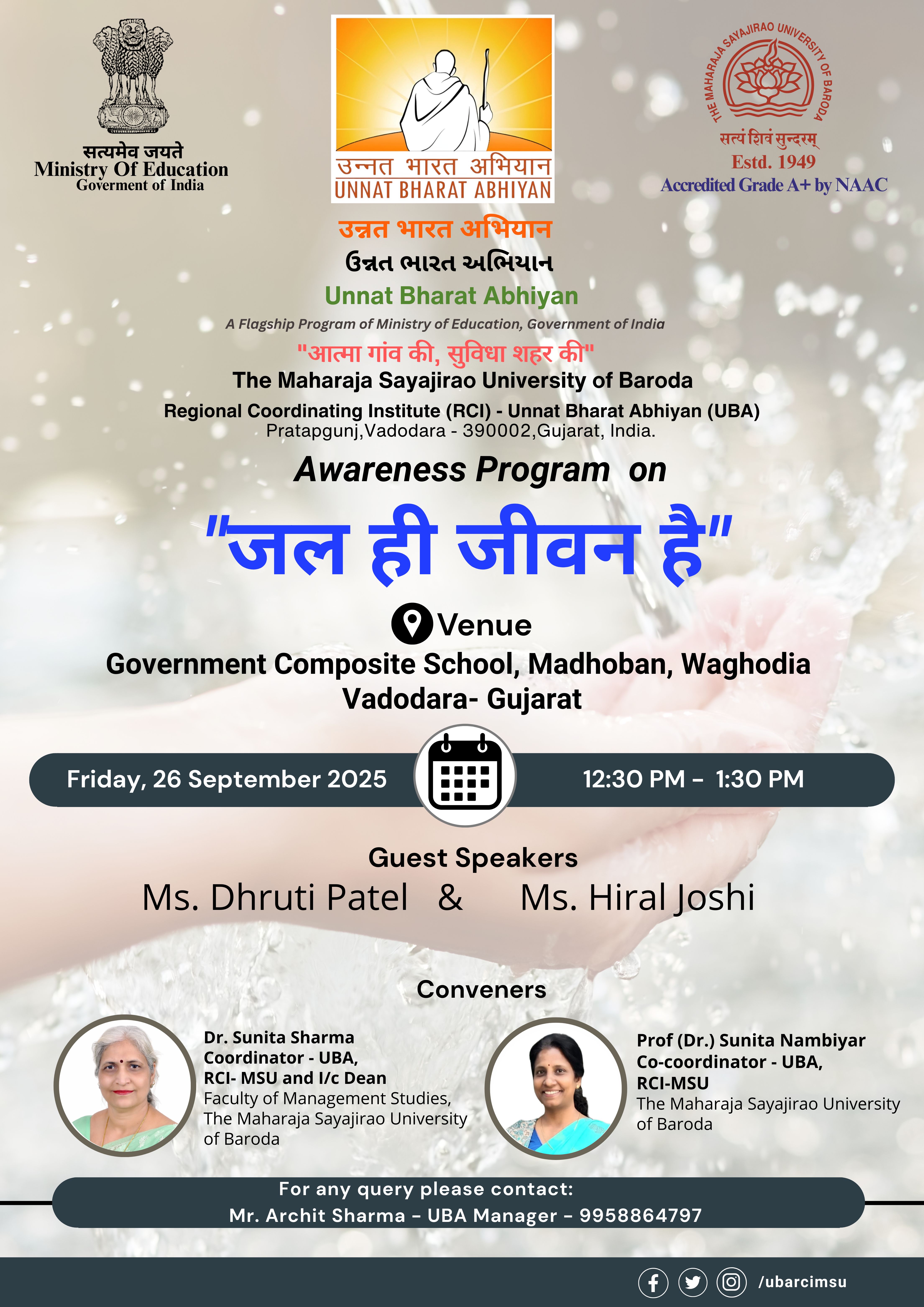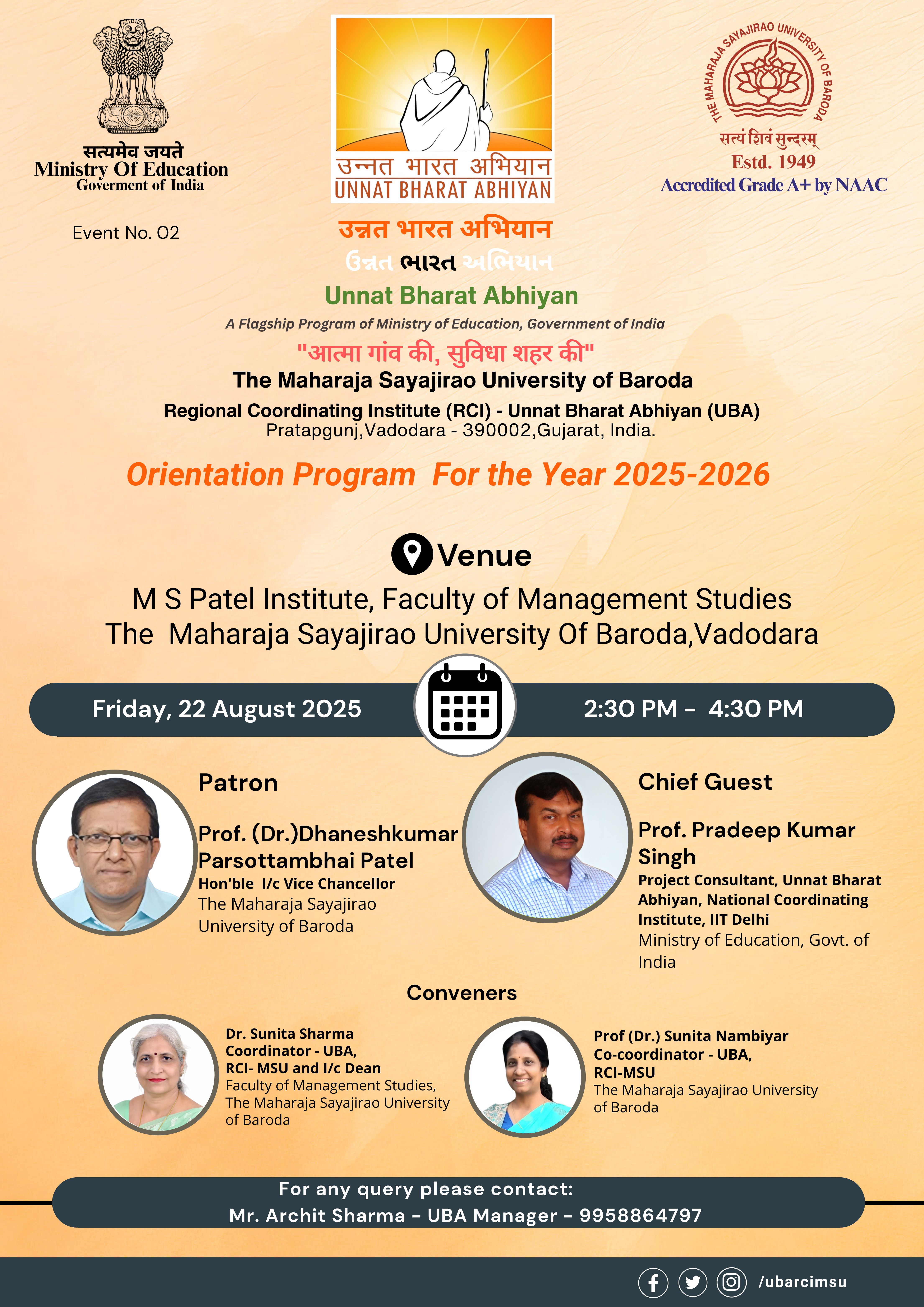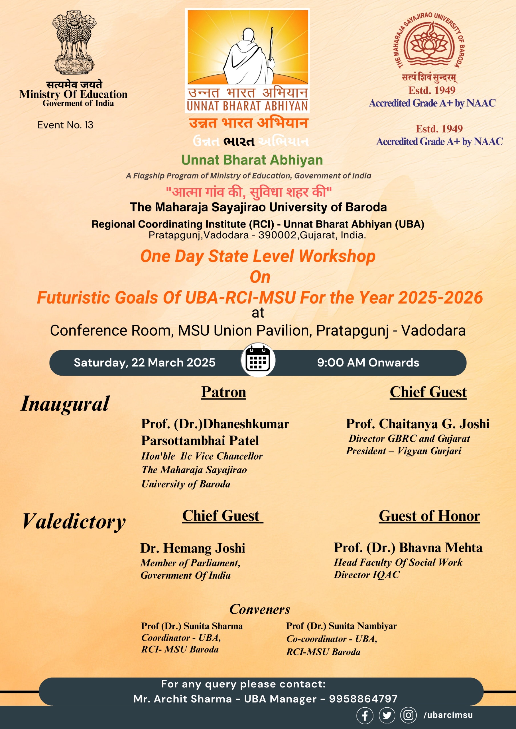On March 22, 2025, under the Unnat Bharat Abhiyan (UBA), a Workshop on Sustainable Rural Development was held at the Conference Room, MSU Union Pavilion, Pratapgunj, Vadodara, organized by The Maharaj .....
