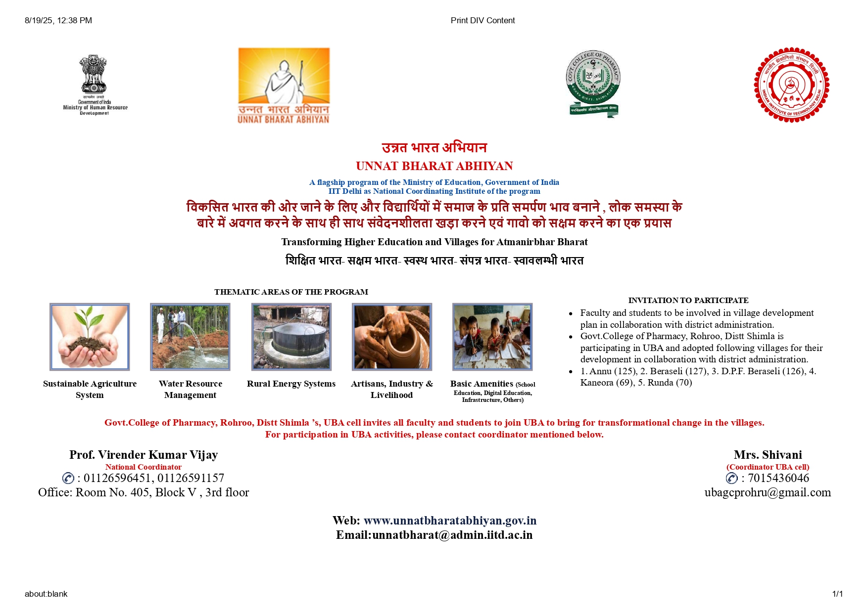 As part of the upcoming Poshan Maah celebrations, a series of impactful activities will be organized at the Anganwadi Hall of Runda Village under the Unnat Bharat Abhiyan by Govt. College of Pharmacy .....