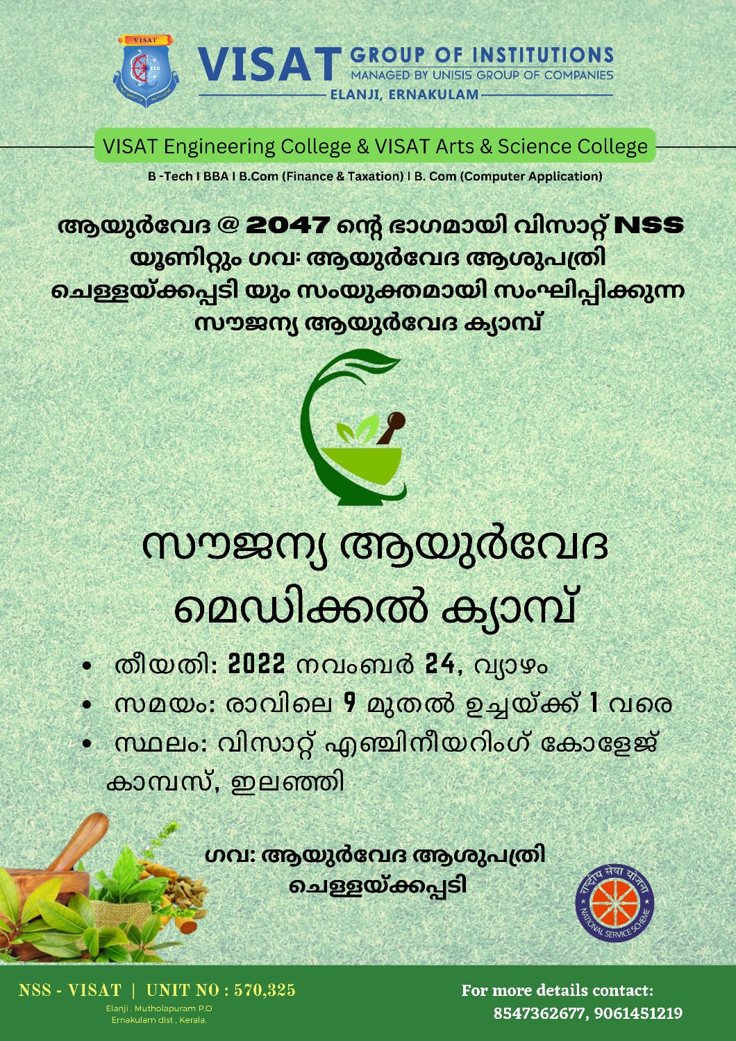 The NSS unit of the college as part of Ayurveda @ 2047 conducted a free Ayurveda Medical in college campus for the public & college staffs on 24/11/2022 - Thursday from 9.00am - 1.00 pm. The camp was .....
