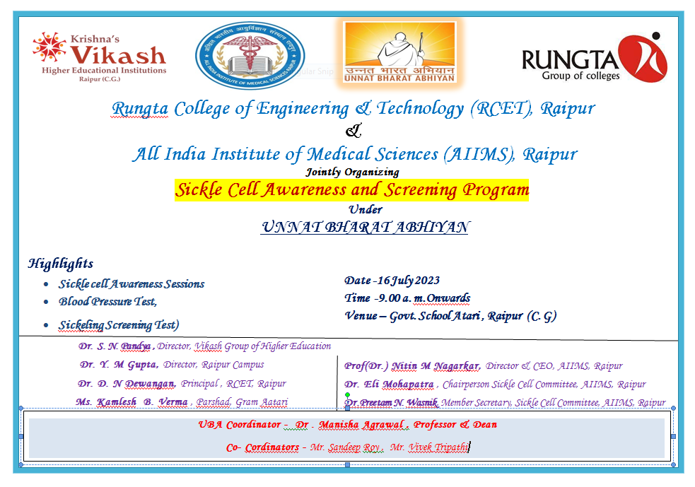 The Sickle Cell Disease Awareness and Screening Camp was organized under the The "Unnat Bharat Abhiyan" (UBA) a flagship program of the Government of India that aims to uplift rural India through par .....