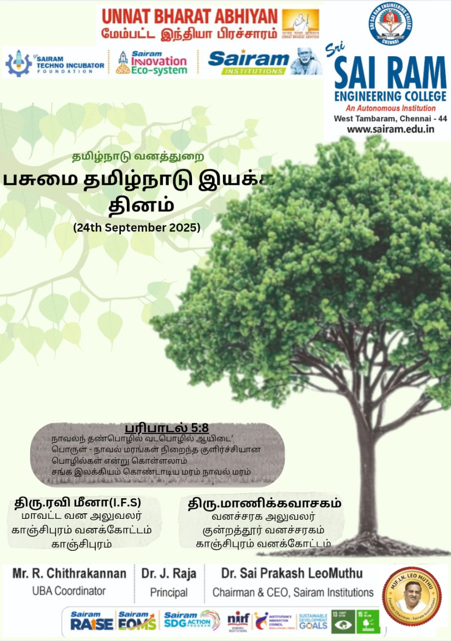 The Green Tamil Nadu Mission Day was observed on 24th September 2025 at Sri Sairam Engineering College, organized jointly by the Unnat Bharat Abhiyan (UBA) Cell and the Forest Department The event a .....