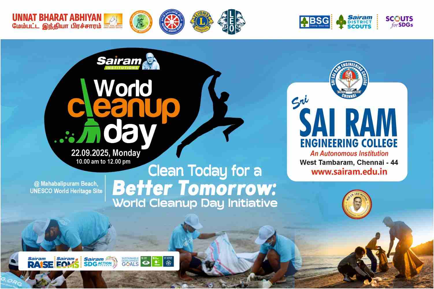 On 22nd September 2025, Sri Sairam Engineering College will organize a Beach Cleanup Initiative at Mahabalipuram Beach, a UNESCO World Heritage Site in Chengalpattu District, as part of the World Clea .....